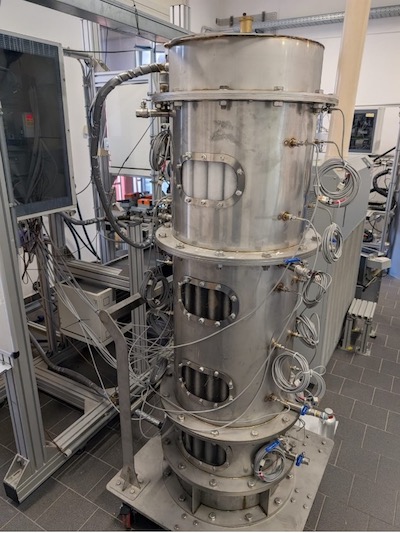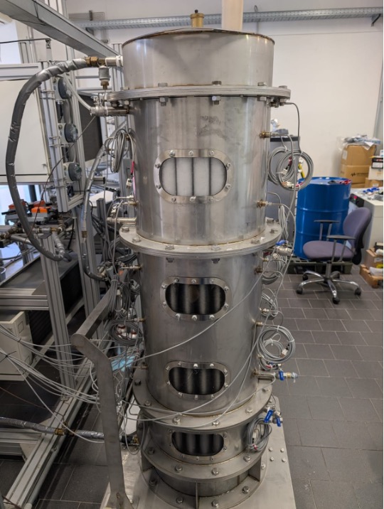 La struttura è composta da moduli di differenti dimensioni, collegati tra di loro in serie. Ogni modulo può contenere un solo tipo di PCM, ed è costituito essenzialmente da uno scambiatore di calore tipo shell & tube, con il fluido termovettore che, scorrendo all’interno fascio tubiero, scambia energia termica con il PCM collocato tra il fascio tubiero e il mantello dello scambiatore.