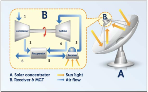La sfida innovativa e distintiva di questo sistema risiede nell’integrazione della tecnologia delle Micro Turbine a Gas (MGT) con quella del solare a concentrazione per produrre energia elettrica, ma anche per sfruttare le potenzialità della cogenerazione termica per il condizionamento e la climatizzazione nel settore civile e industriale, nonché la dissalazione delle acque, utilizzando il calore residuo dell’aria in uscita dall’impianto.