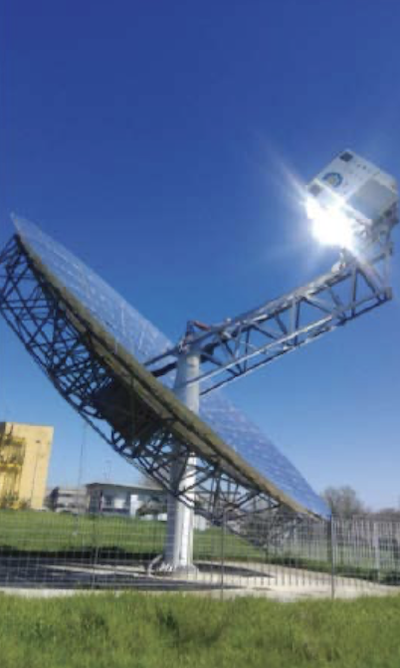 L’espansione in turbina attiva un generatore ad alta frequenza che raggiunge una velocità di rotazione di circa 130.000 giri/ minuto, assicurando una potenza elettrica in uscita compresa tra 3 e 5 kW. Pertanto, rispetto al fotovoltaico tradizionale, che trasforma l’energia solare direttamente in elettricità, in questa tecnologia la radiazione solare riflessa viene prima convertita in energia termica, facilmente accumulabile, e poi in elettricità attraverso il ciclo Brayton recuperativo sopra descritto. Con l’adozione di un piccolo accumulo termico è possibile compensare le fluttuazioni della radiazione solare di breve termine e stabilizzare la produzione elettrica in uscita.