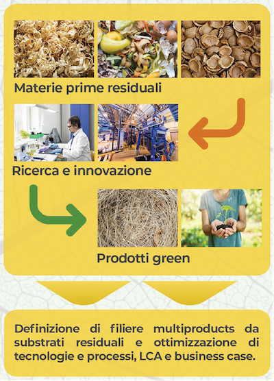 In particolare, il progetto si occupa dello sviluppo di processi di pretrattamento, estrazione, separazione e trasformazione chimica/biotecnologica, utilizzando un approccio a cascata di bioraffineria e partendo dalla valutazione della disponibilità di biomasse residue nel territorio di riferimento.